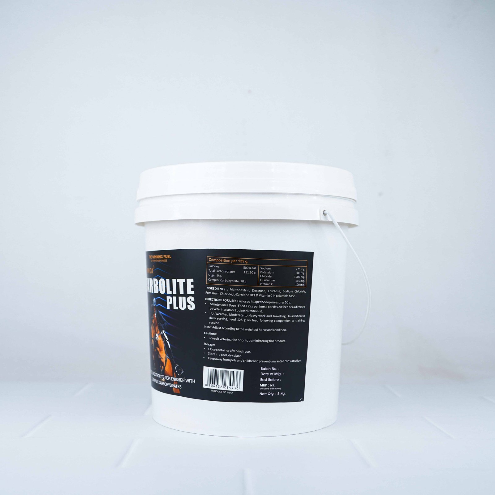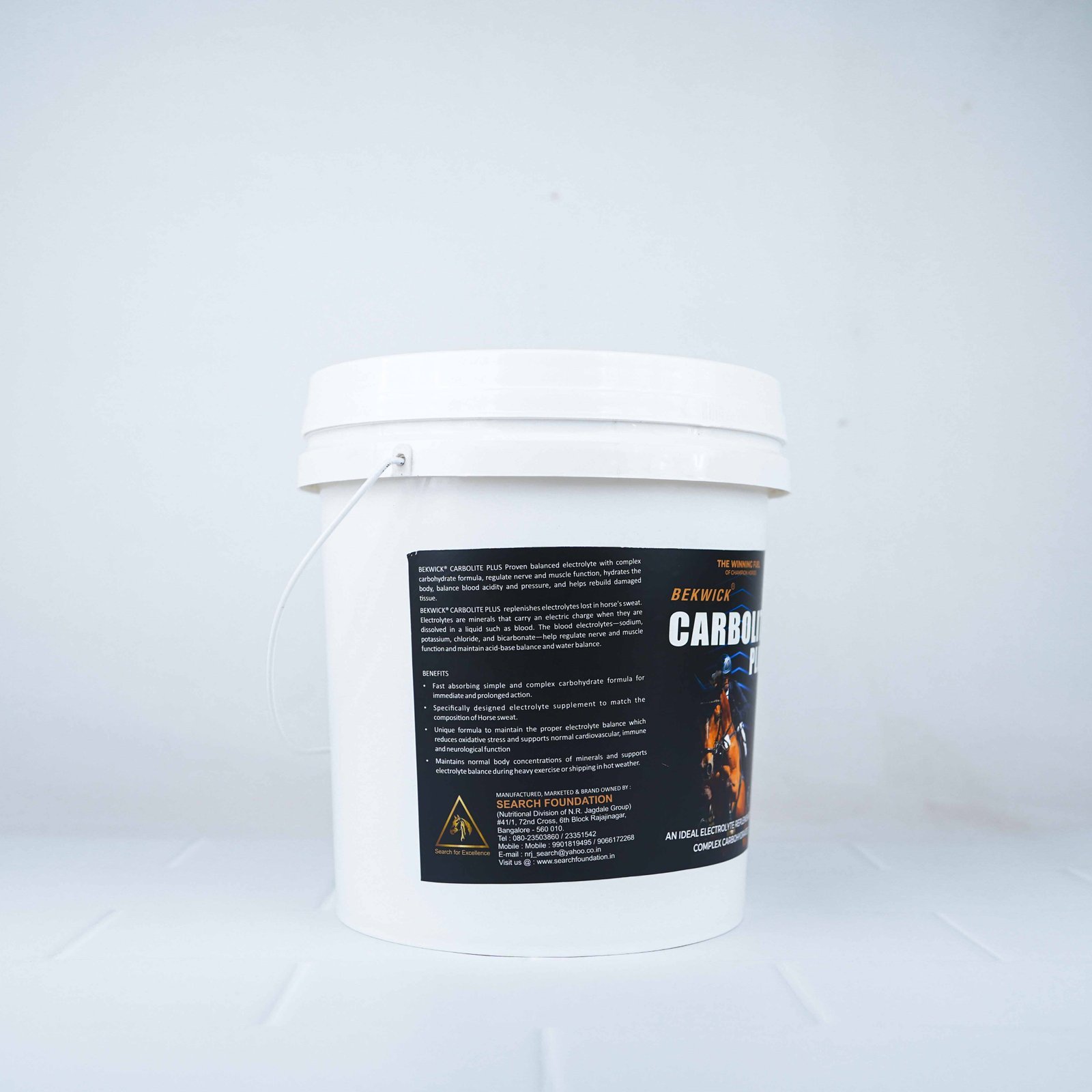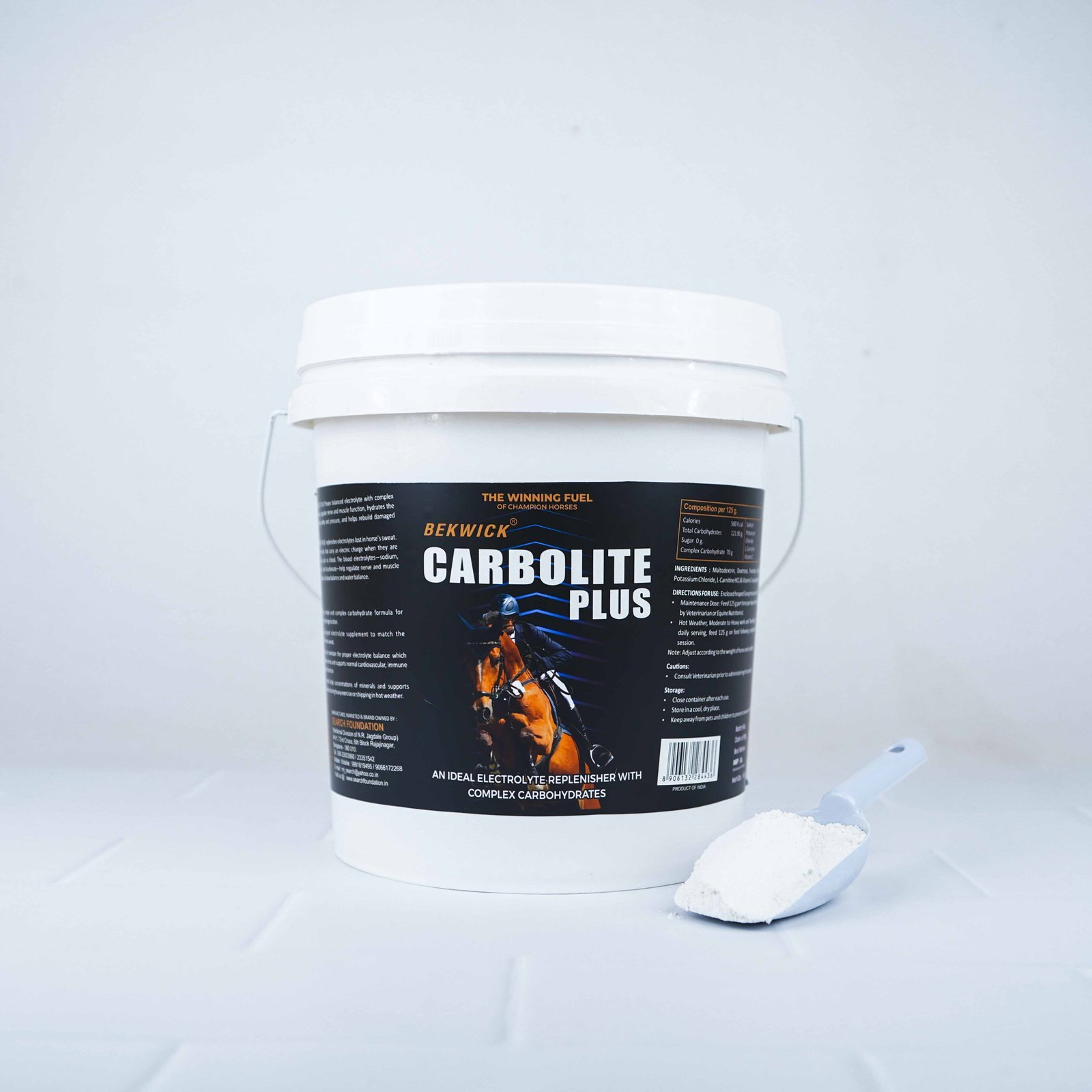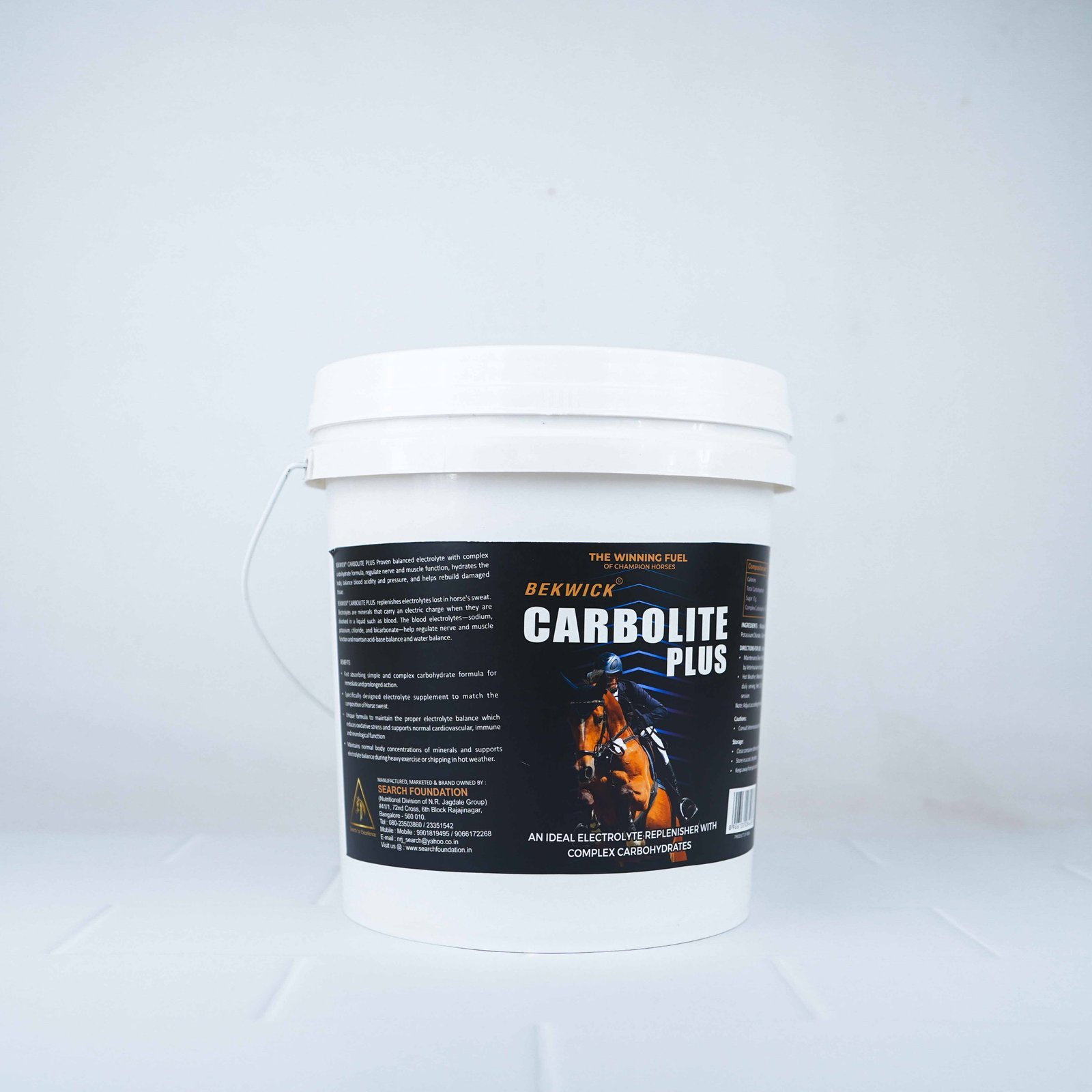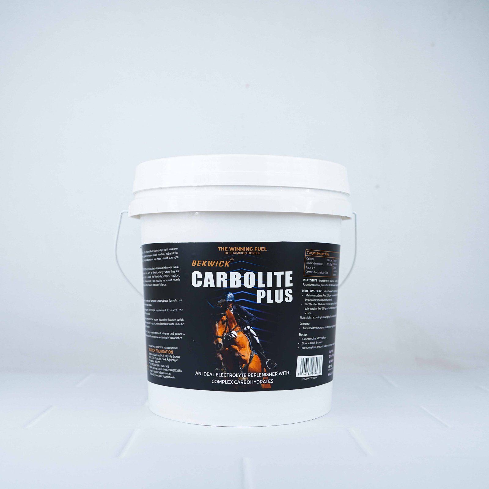 BEKWICK® CARBOLITE PLUS replenishes electrolytes lost in a horse’s sweat. Electrolytes are minerals that carry an electric charge when they are dissolved in a liquid such as blood. The blood electrolytes—sodium, potassium, chloride, and bicarbonate—help regulate nerve and muscle function and maintain acid-base balance and water balance.